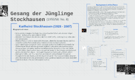 We are faced here with. It was realized in the Westdeutscher Rundfunk WDR studio in Cologne. Karlheinz Stockhausens Gesang der Junglinge 1955-1956 has long been recognized as one of the touchstones in the history of electronic music.